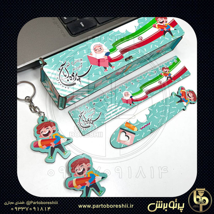 پک شامل:جامدادی| خط کش|نشانگرکتاب|جاکلیدی| پیکسل یا بج سینه میباشد که بصورت جداگانه هم قابل فروش میباشد.